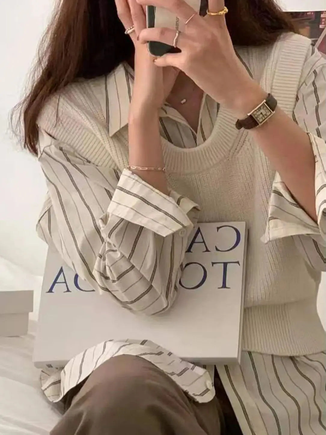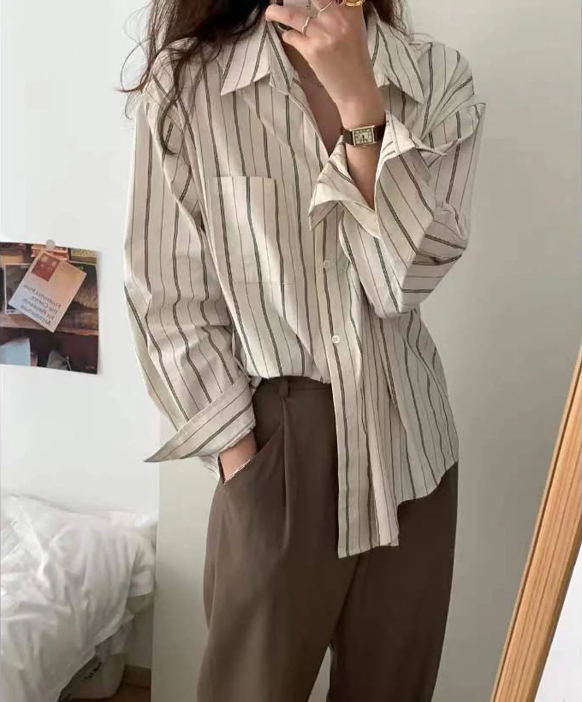 Apricot Blouse Women Spring Long-sleeved Striped Top Basic Blouses For Woman Casual Ladies Shirts Korean Fashion Female Clothes