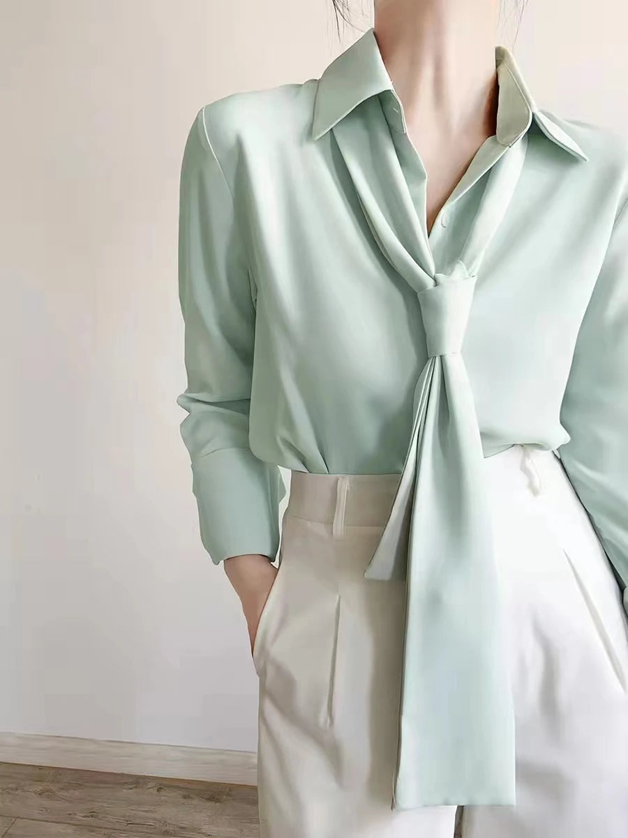 Minority Chiffon Blouse For Women Spring New Detachable Ribbon Long-sleeved Office Lady White Shirts Korean Fashion Female Tops