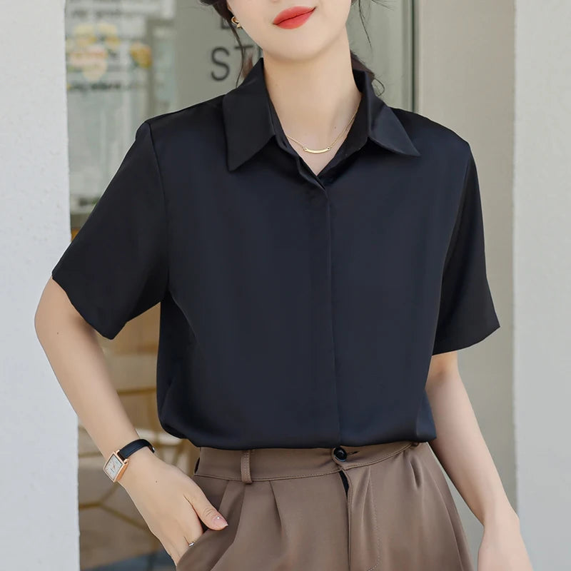 Summer New Women's Blouse Casual Loose Short Sleeve Ladies Shirt Japanese Fashion Pullover Button Up Female Clothing Elegant Top