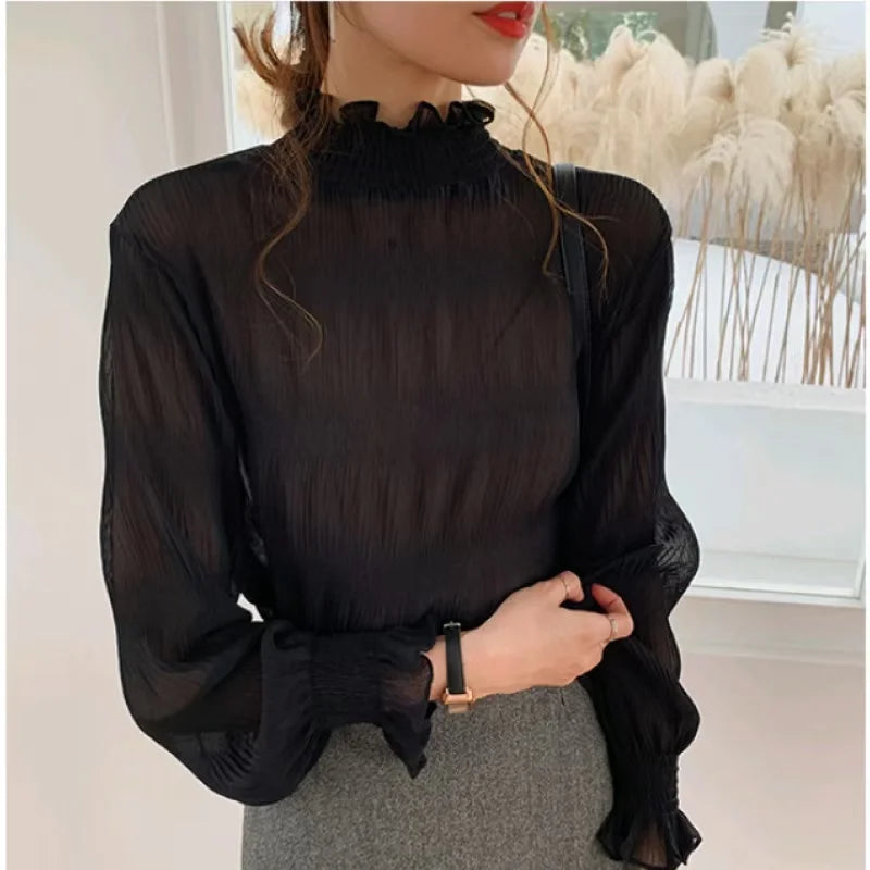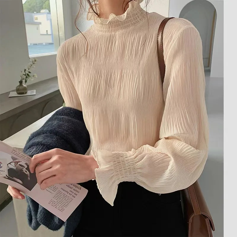 Women's Spring Autumn New Lace Bottoming Shirts Female Solid Loose Shirt Tops Ladies Turtleneck Long Sleeve Popular Blouses